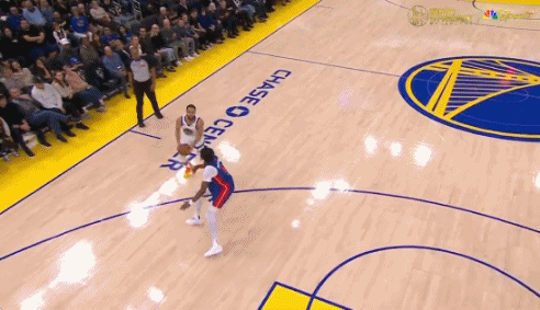 比赛第四节,库里经过活塞替补席前方,斯图尔特从板凳席站起推搡库里。